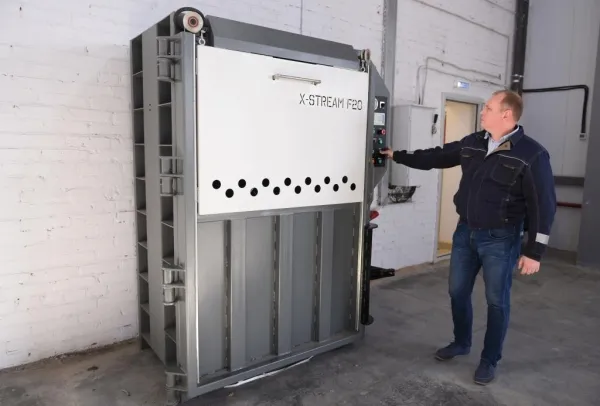 Гидропресс X-Stream оборудован автоматизированной системой управления на базе программируемого логического контроллера. Оператору необходимо только лишь загрузить материал, всю остальную работу оборудование выполняет самостоятельно после нажатия одной кнопки.